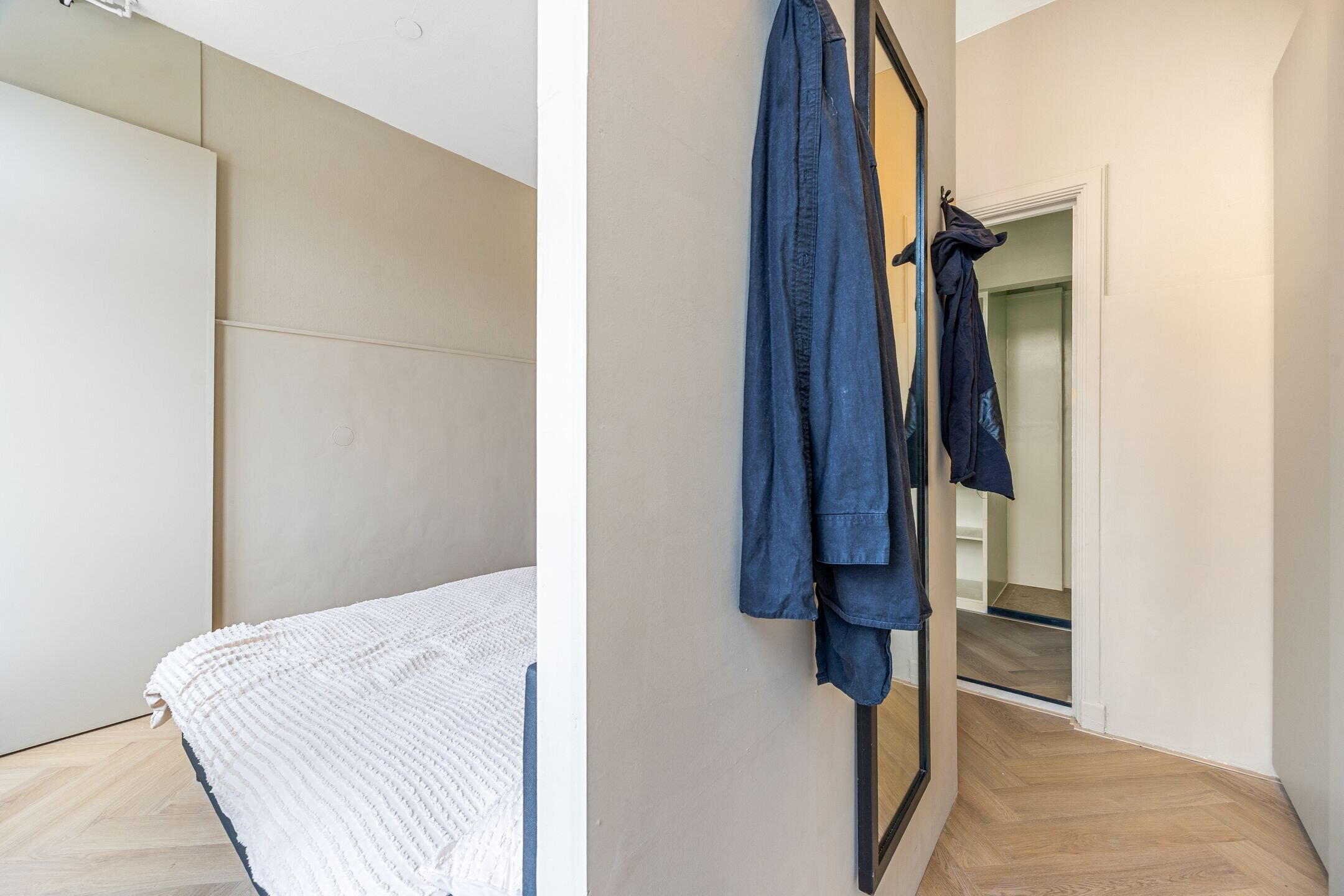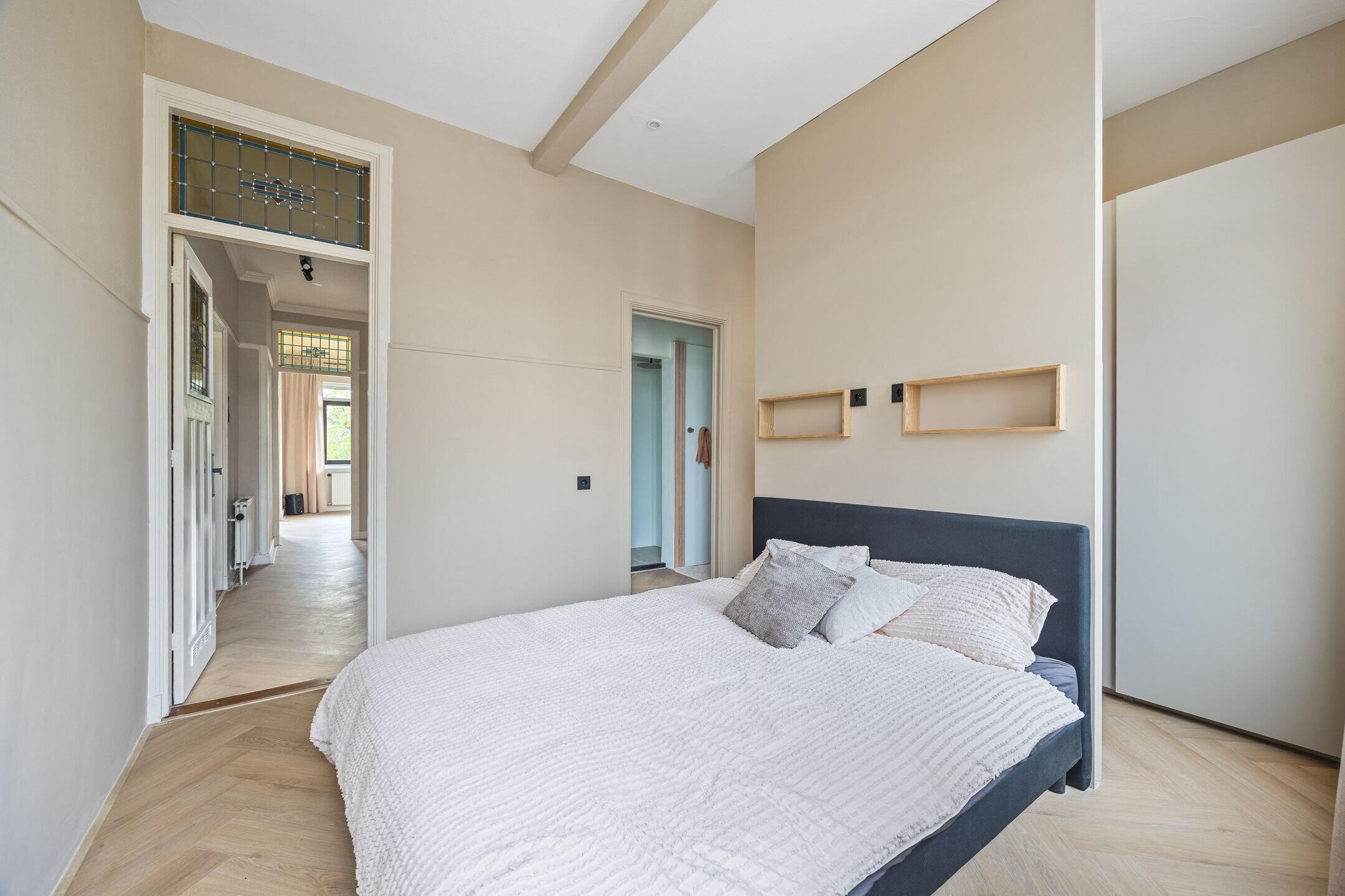 Aan de achterzijde van deze verdieping bevindt zich de eerste slaapkamer met inloopkast en badkamer en-suite—hier beleeft u het ultieme hotelgevoel!