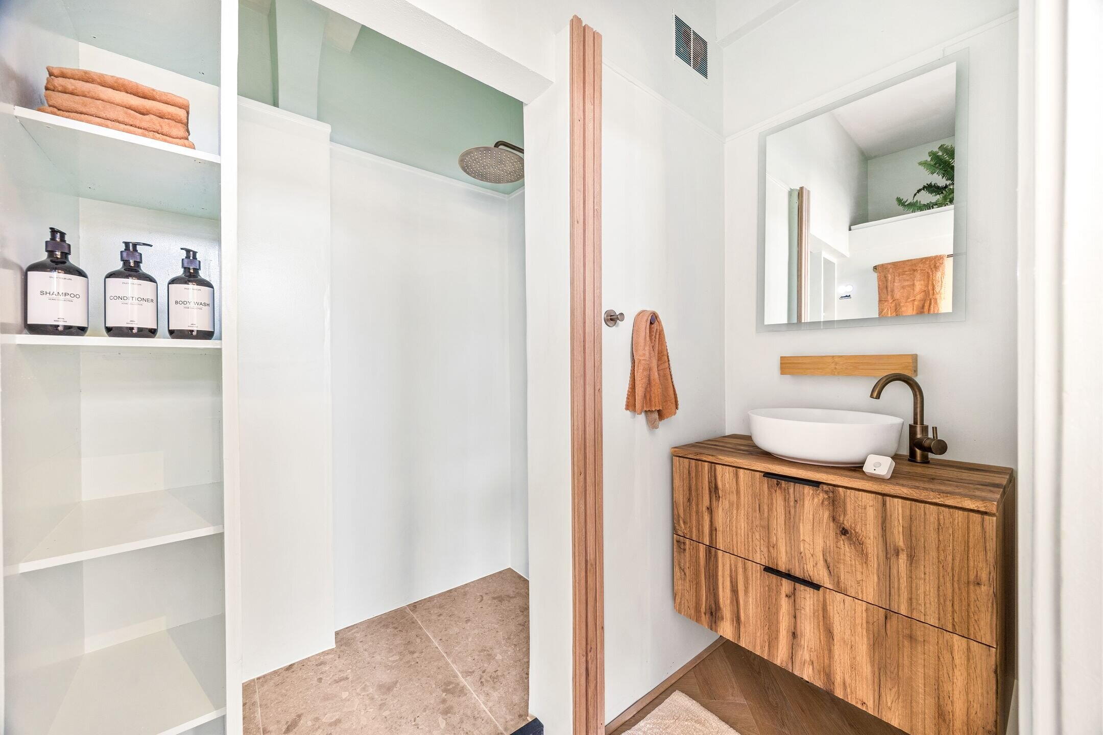 - New bathrooms with walk-in shower, washbasin cabinet and mirror