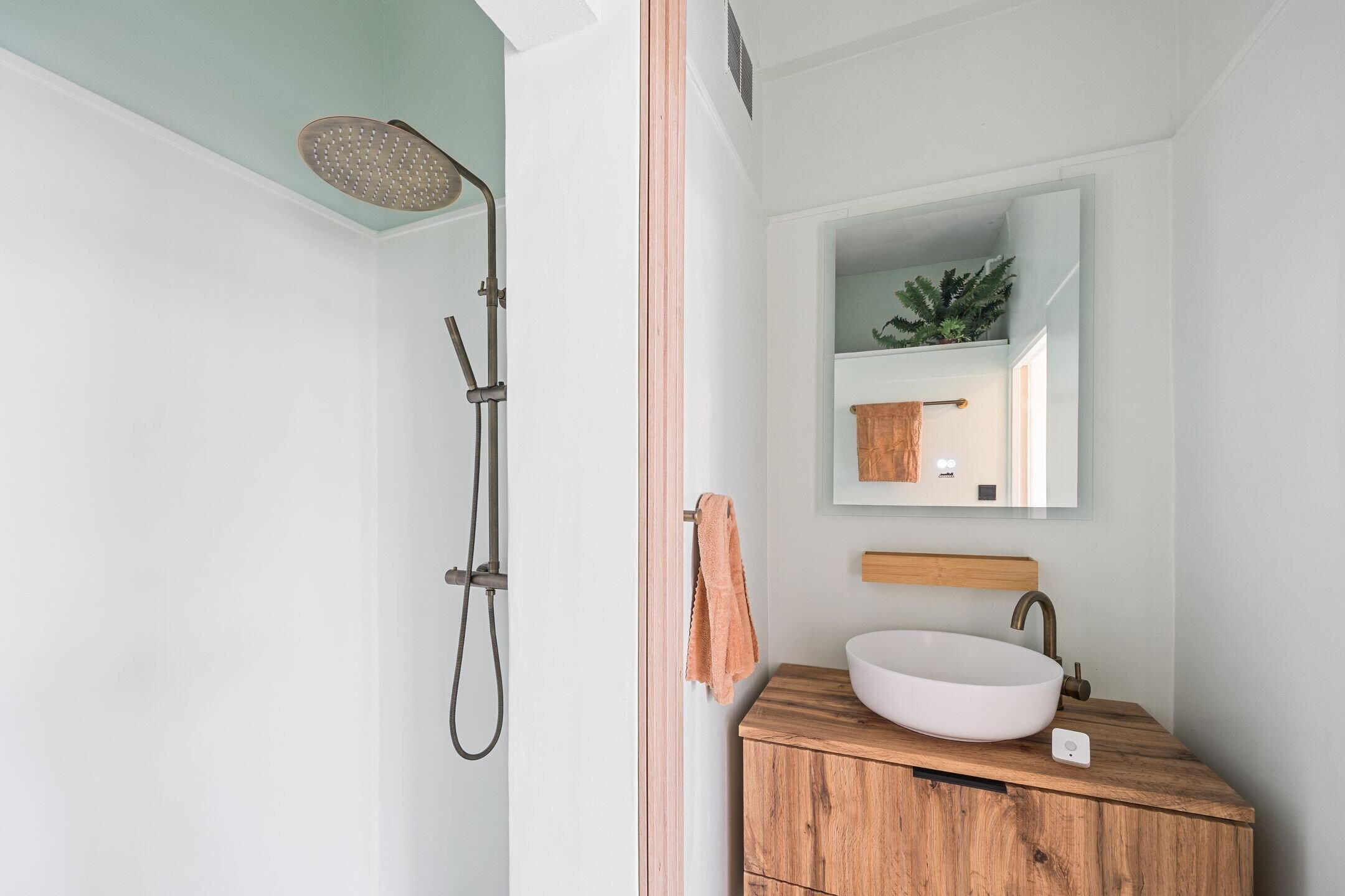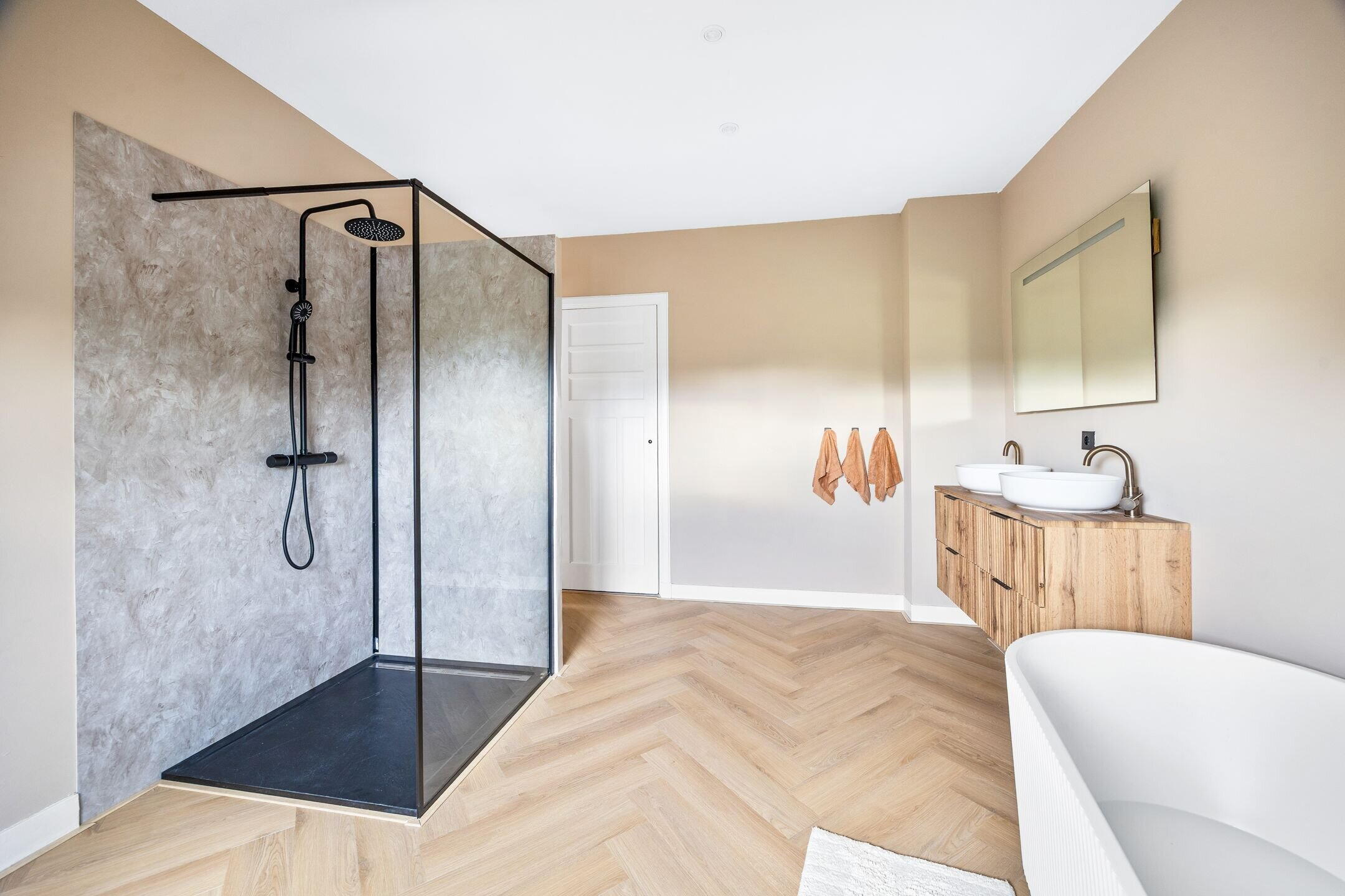 - Nieuwe badkamers met inloopdouche, wastafelmeubel en spiegel