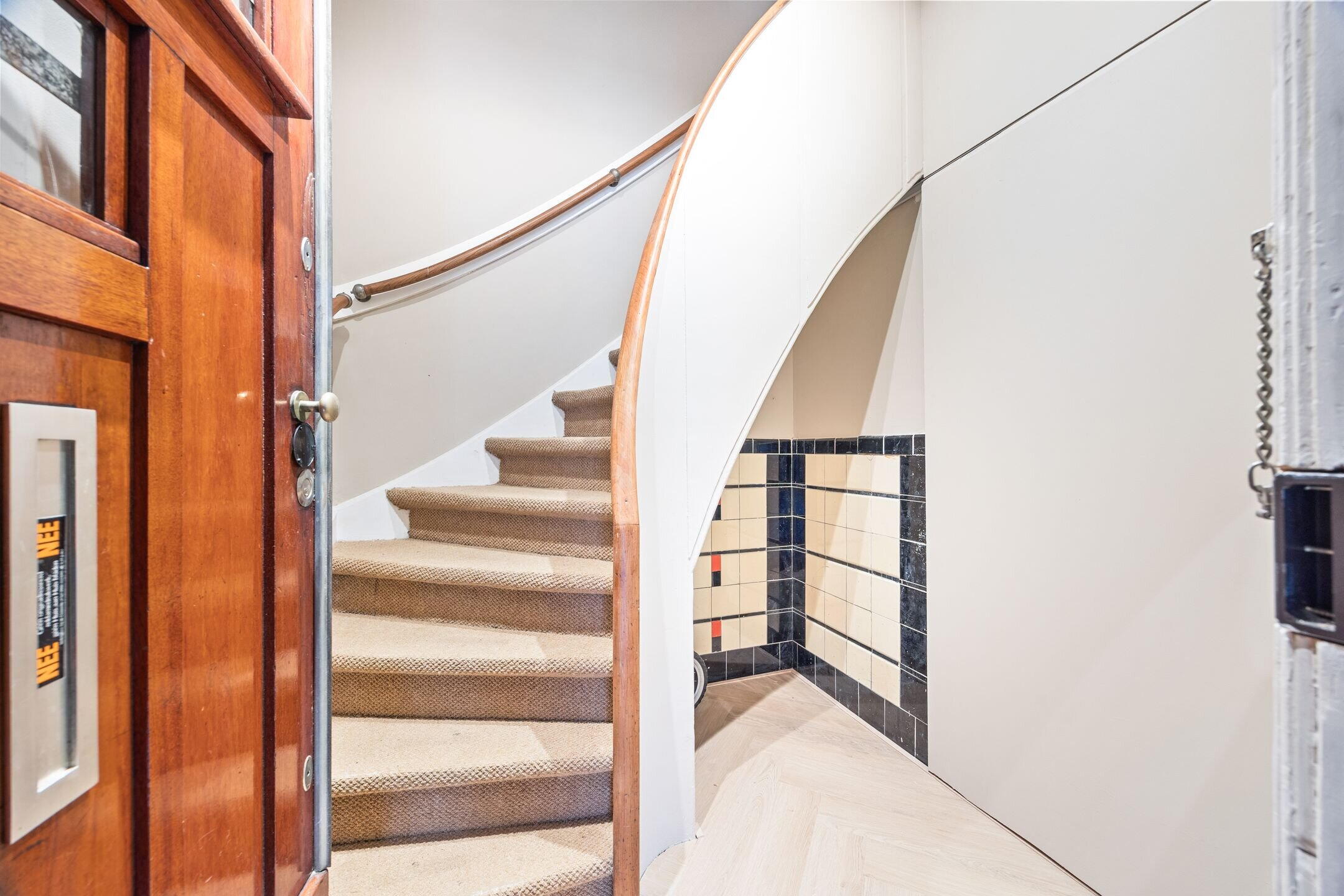 Open portiek met trap naar de eerste verdieping.
